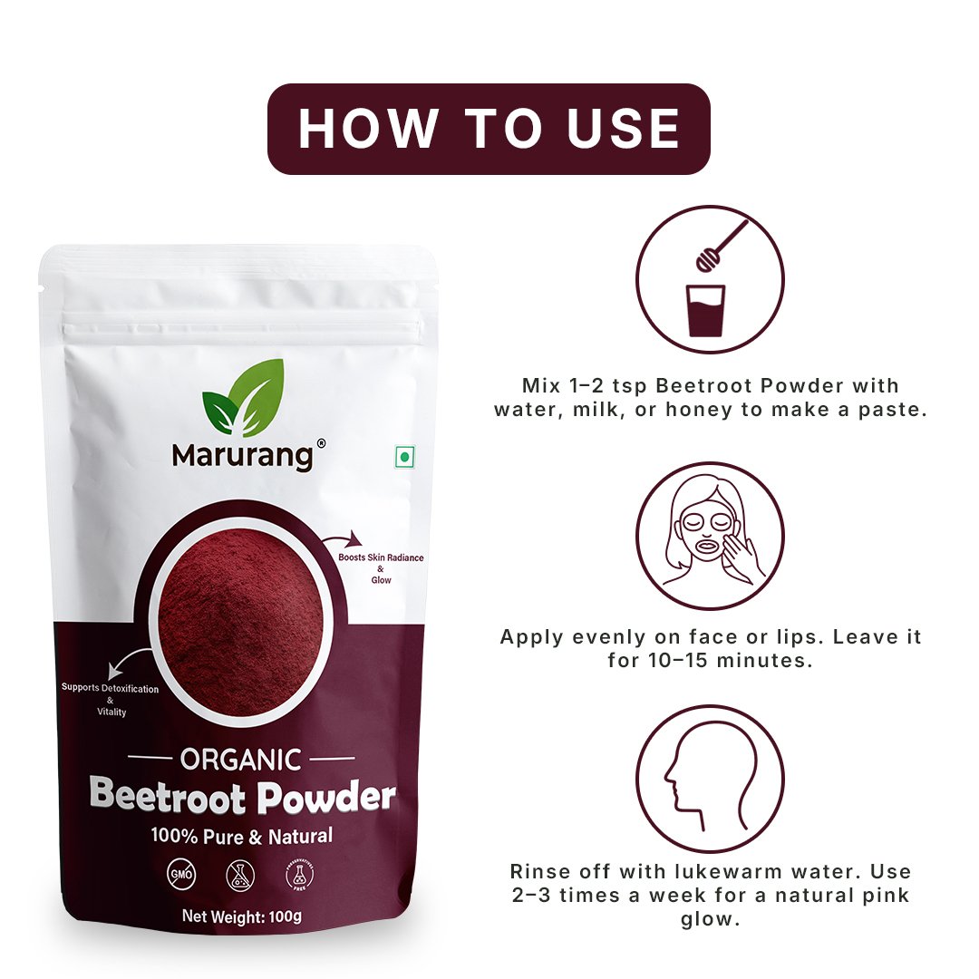 Marurang Orange Peel & Beetroot combo skin ko natural glow deta hai. Regular use se dullness kam hoti hai aur face fresh lagta hai