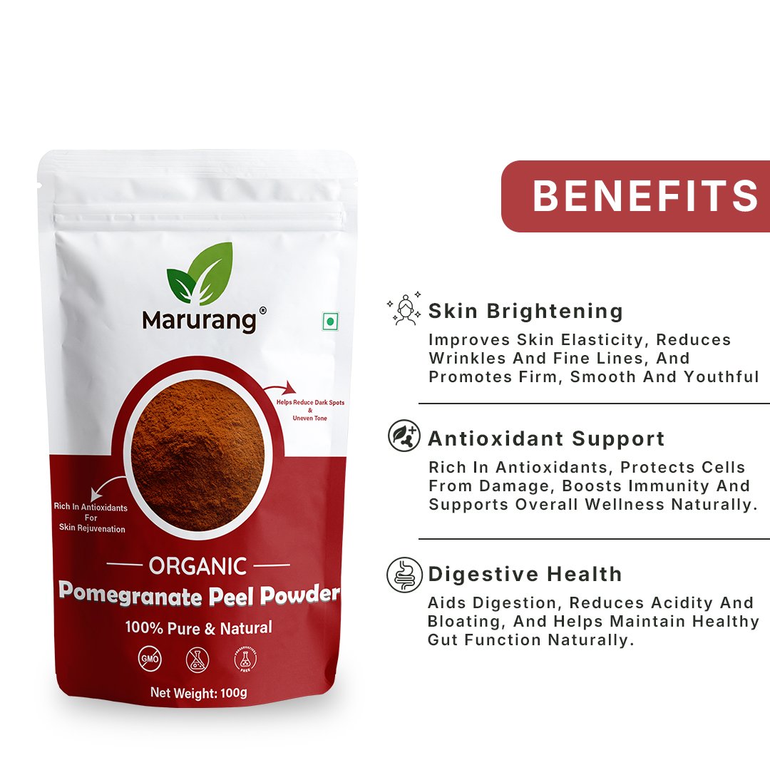 Discover the perfect ingredient for achieving flawless, glowing skin with our Pomegranate Peel Powder. Crafted from premium-quality pomegranate peels, this 100-gram pack is a rich source of antioxidants and essential vitamins. The natural compounds in this powder work harmoniously to brighten your skin tone while reducing blemishes and uneven texture.