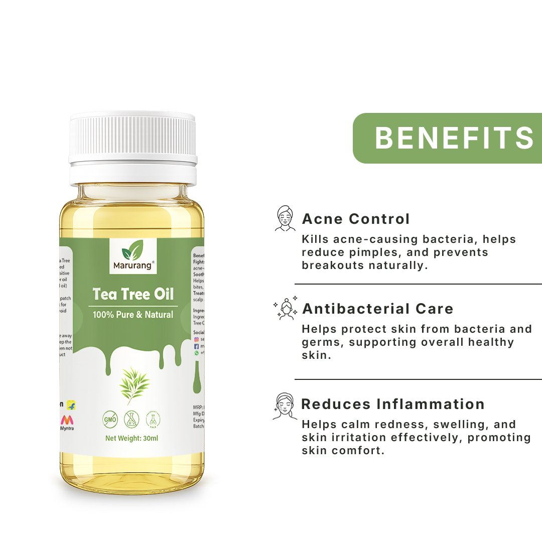 Tea Tree Oil offers incredible benefits to improve the health of your skin and hair. Its antibacterial and antifungal properties make it ideal for combating acne, soothing irritated skin, and reducing redness and swelling. Additionally, this essential oil protects your scalp, reduces dandruff, and strengthens your hair, giving it a natural shine. Simply dilute a few drops with a carrier oil or mix it into your favorite skincare or haircare products to experience its transformative effects.